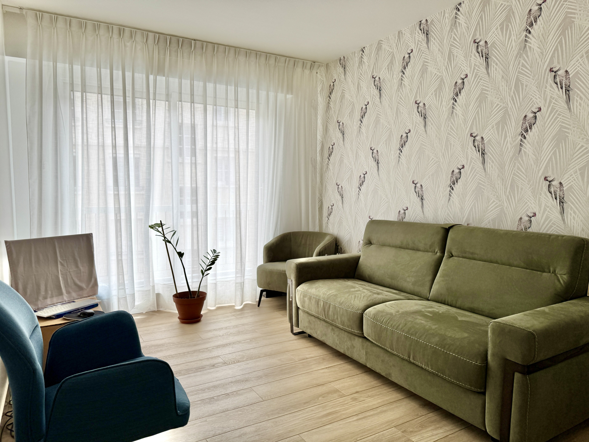 Le séjour de près de 37m2, baigné de lumière grâce à ses larges ouvertures, s'ouvre sur un balcon filant, idéal pour profiter d'un extérieur agréable, sans entretien !