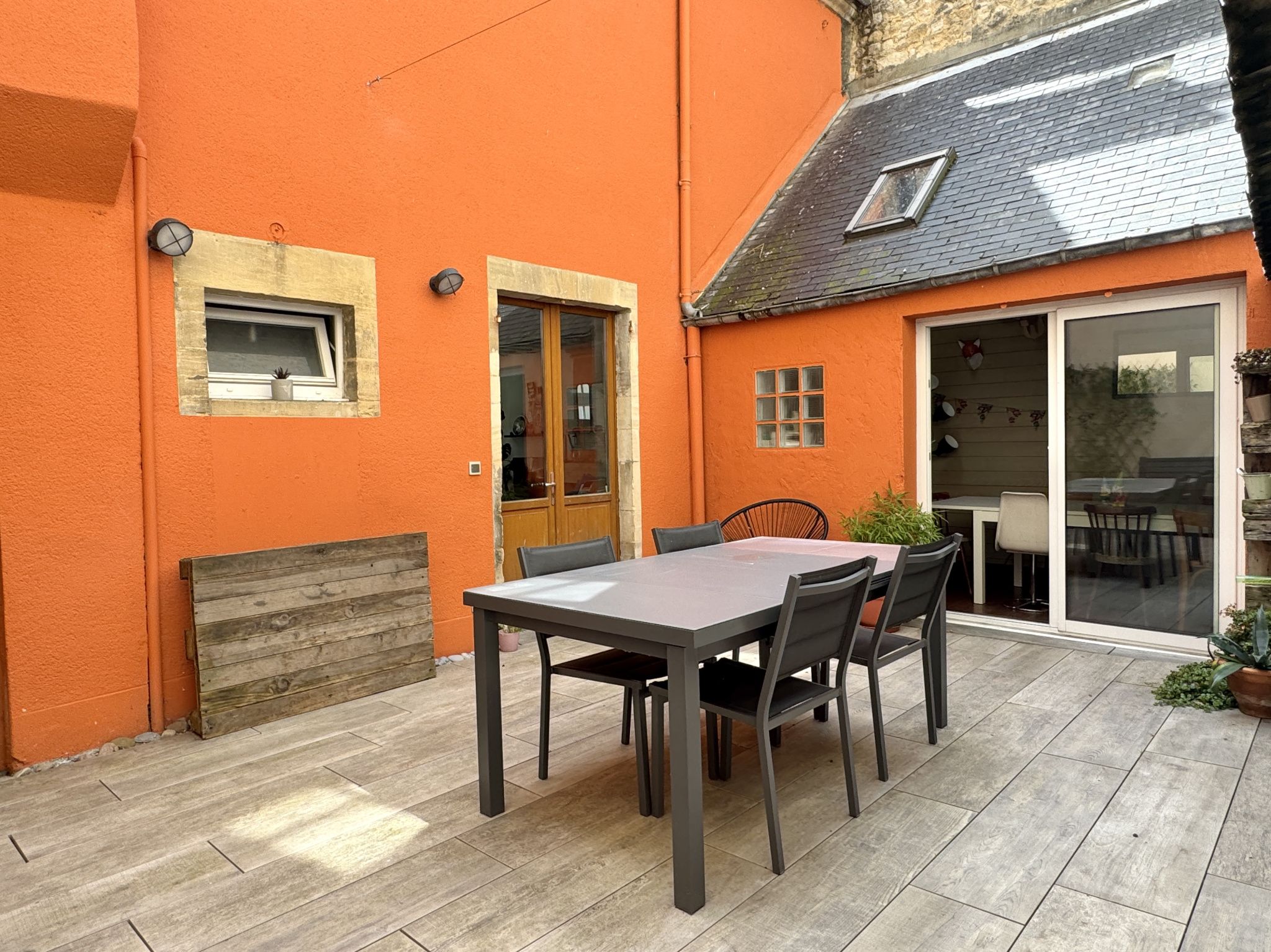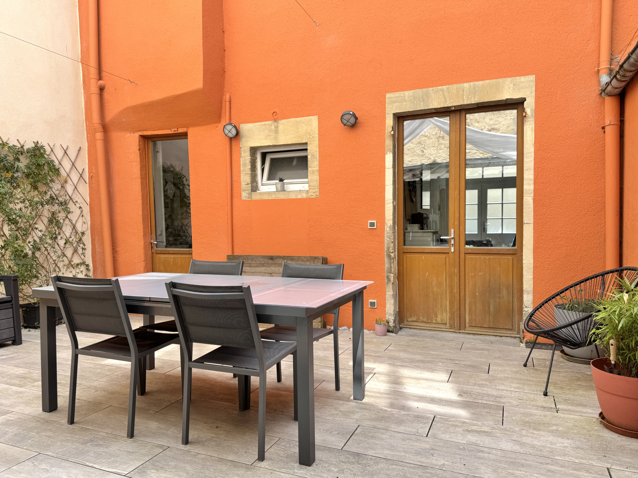 La courette de 33m2, à l'arrière de la maison, représente un espace extérieur particulièrement appréciable et sans entretien. Elle est agrémentée d'un abri bois et d'un local dédié à la chaudière.