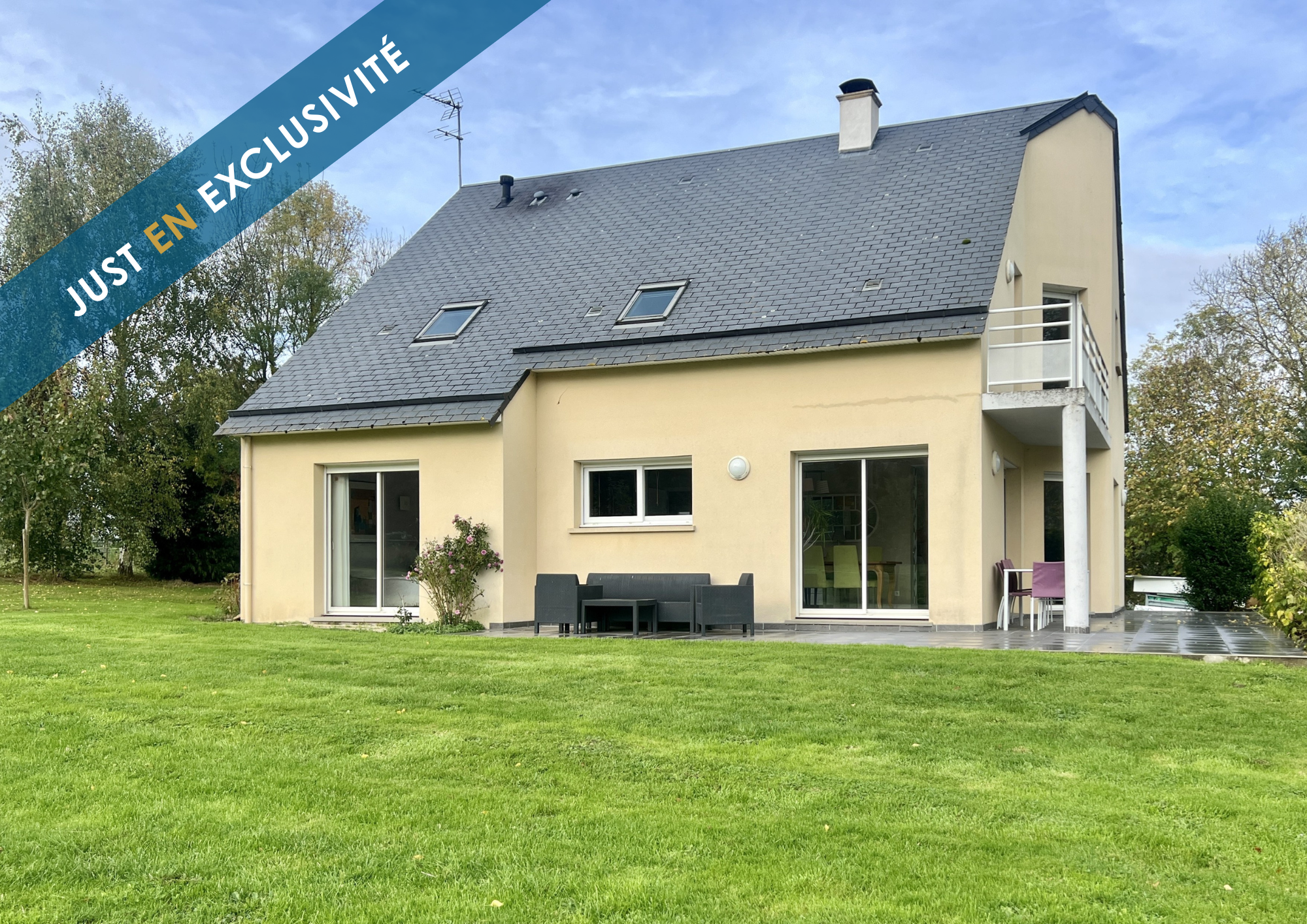 EXCLUSIVITÉ Just in Home ! Bienvenue à Feuguerolles-sur-Seulles, au coeur de la campagne normande à seulement 20mn de BAYEUX et 5mn de VILLERS-BOCAGE.<br>Découvrez cette agréable maison familiale construite en 2008, offrant 157m2 habitables sur un terrain de plus de 1,5 hectare. Le rez-de-chaussée propose une cuisine fonctionnelle, un salon chaleureux équipé d'un insert à bois, et une salle à manger conviviale, le tout avec une vue imprenable sur la nature grâce à ses grandes ouvertures. Une chambre et une salle d'eau complètent ce niveau, idéal pour profiter d'une vie de plain-pied.<br>À l'étage, vous trouverez une salle de bains, trois chambres confortables dont deux avec un accès sur un balcon donnant sur la verdure, et un bureau, parfait pour le télétravail ou une salle de loisirs.<br>Un garage de 30m2 attenant à la maison offre un espace pratique pour le stationnement et le rangement.<br>À l'extérieur, le grand champ qui entoure la propriété comprend un box pour chevaux, un atout pour les passionnés d'équitation ou les amoureux de la nature. L'ensemble forme un lieu calme, lumineux et verdoyant, idéal pour ceux qui recherchent la tranquillité de la campagne tout en restant proches des commodités. Une belle opportunité à découvrir sans tarder.<br> Pour plus d'informations ou pour organiser une visite, contactez Charlène GUERIN (EI) 06.60.87.36.37 Agent commercial immatriculé au RSAC de CAEN sous le numéro 937 864 783. Just in Home, deux agences immobilières à votre service à Bayeux et Carpiquet. Les informations sur les risques auxquels ce bien est exposé sont disponibles sur le site Géorisques : www.georisques.gouv.fr.