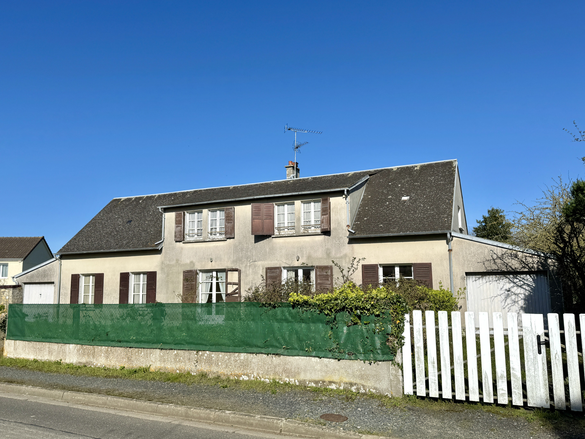 Deux garages d'environ 19m2 complètent ce bien, avec une cour à l'avant et un grand jardin à l'arrière, le tout sur une parcelle de 1157m2.
