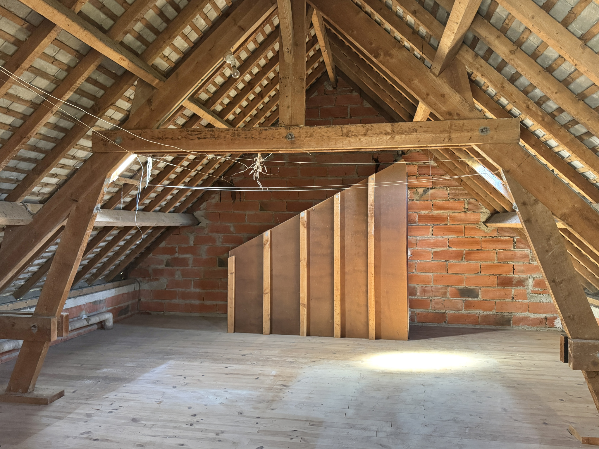 La maison se compose au rez-de-chaussée d'une entrée, d'une cuisine, d'un salon/salle à manger avec cheminée, de deux chambres, d'un bureau, de deux salles d'eau et de deux WC. À l'étage, deux chambres et des greniers offrant des possibilités d'aménagement supplémentaires.