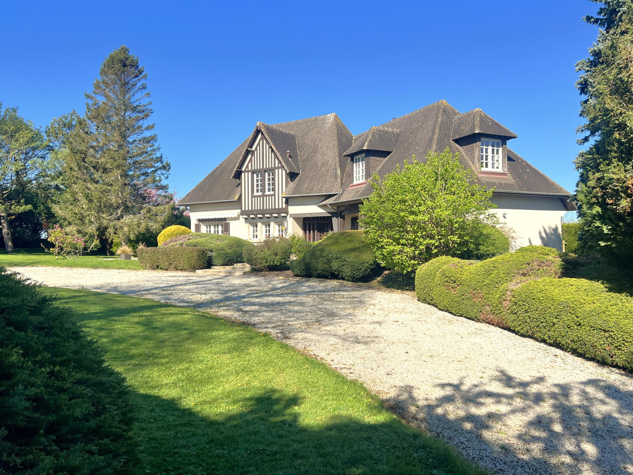 À seulement 900 mètres du centre de Bayeux, au coeur d'un environnement privilégié, cette propriété familiale de caractère développe plus de 210 m2 habitables sur un magnifique terrain arboré de plus de 6 000 m2.