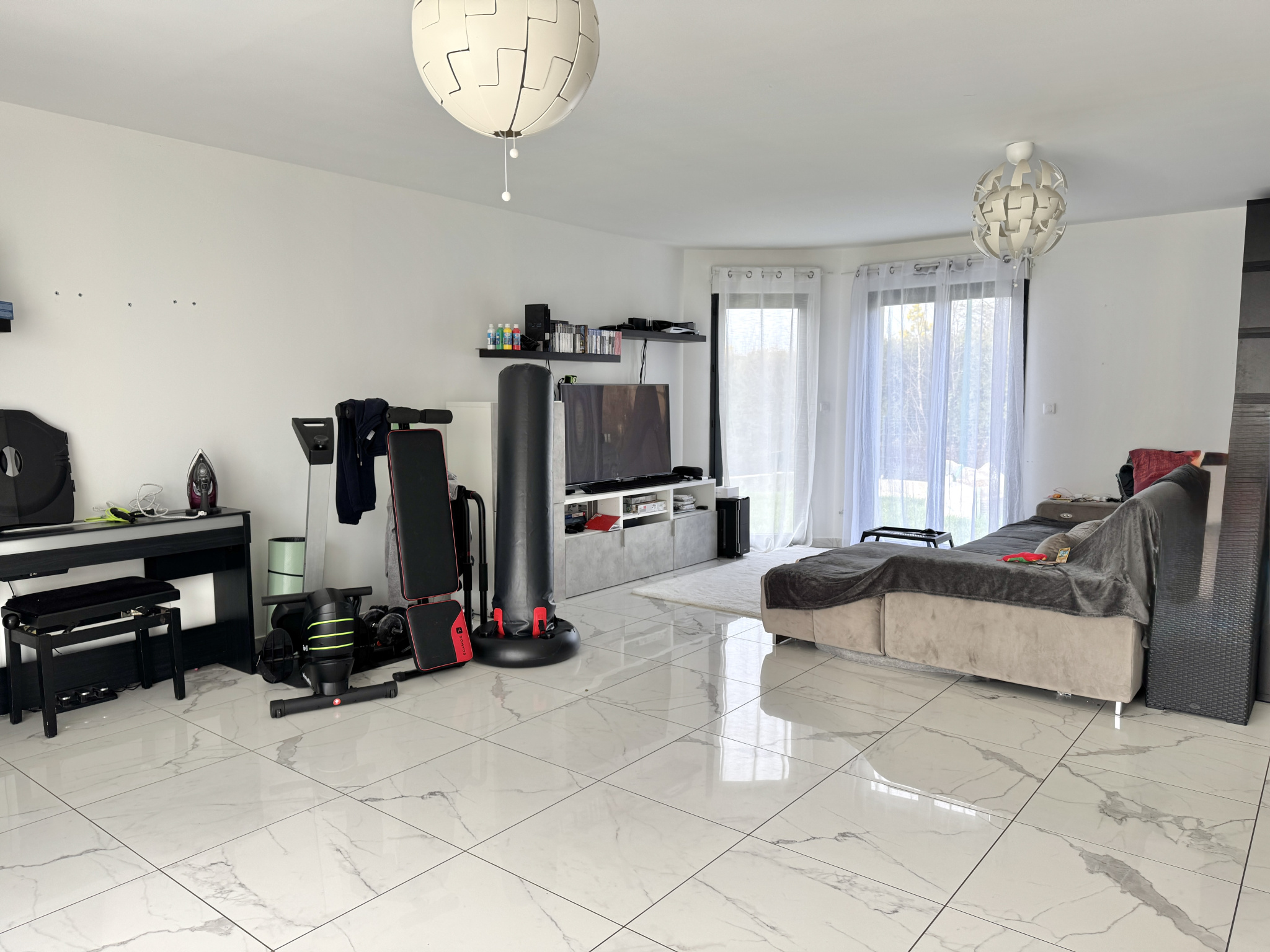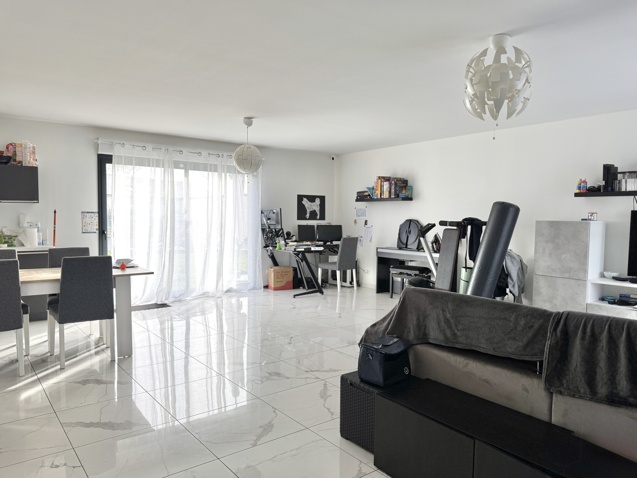 La maison est raccordée au tout-à-l'égout et bénéficie de prestations de qualité : menuiseries PVC/ALU double vitrage, volets roulants électriques et chauffage par pompe à chaleur avec plancher chauffant. Taxe foncière : 730EUR.