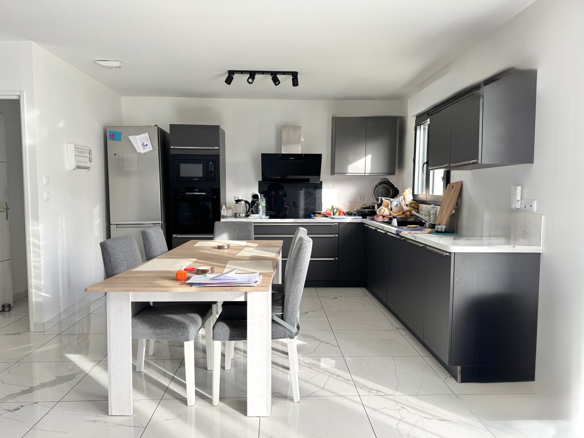 Dès l'entrée, vous découvrirez une vaste pièce de vie d'environ 55m2, où la cuisine aménagée et entièrement équipée s'ouvre sur le séjour, créant un espace convivial et harmonieux. L'espace nuit se compose d'un couloir desservant trois chambres ainsi qu'une salle de bains.