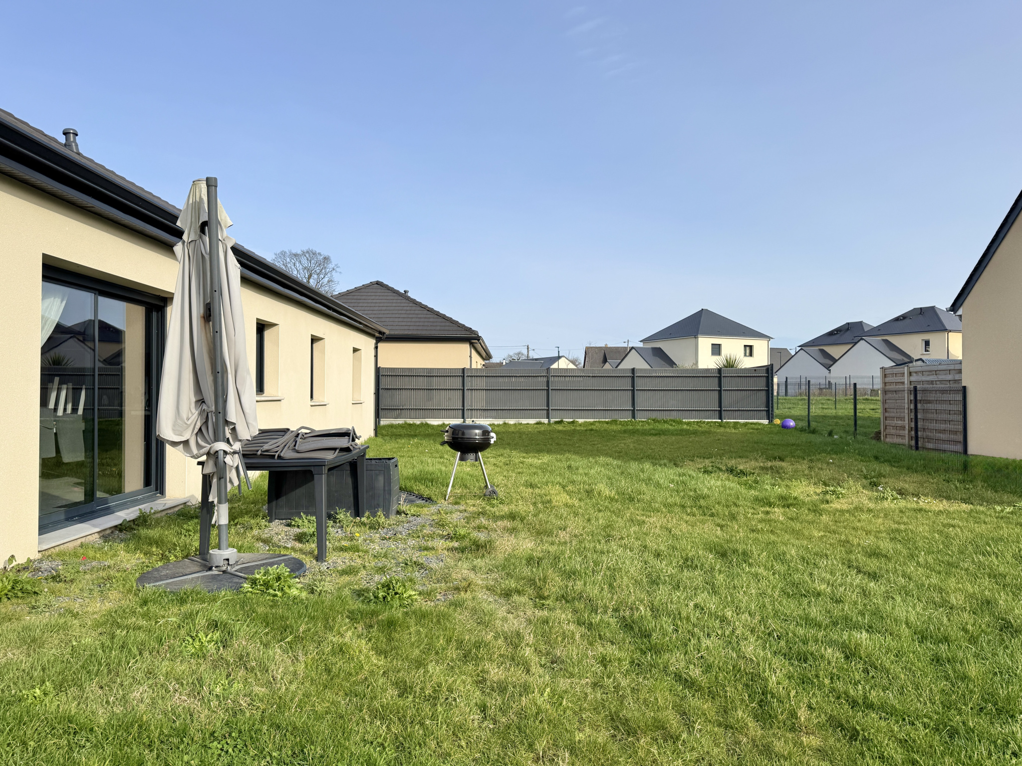 Un garage attenant de 14,88m2 vient compléter l'ensemble et dispose d'un espace buanderie, avec la possibilité d'aménager un plancher pour du rangement supplémentaire. À l'extérieur, le terrain de 579m2 permet de profiter pleinement des beaux jours tout en restant facile à entretenir.