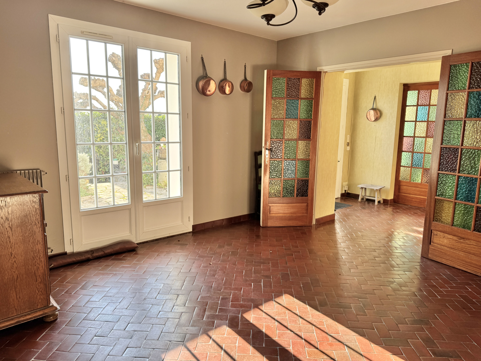 Le terrain, d'environ 6000m2, offre un environnement verdoyant avec terrasse, potager, verger et pré, idéal pour profiter pleinement de la nature. La maison, particulièrement lumineuse, ne demande qu'à retrouver tout son éclat grâce à des travaux de rénovation.